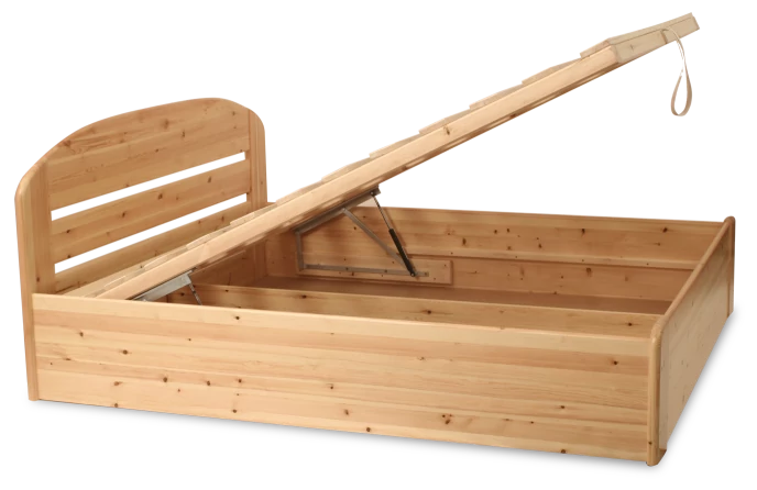 Az Anikó ágykeret praktikus és stílusos választás azoknak, akik szeretik a természetes fa bútorokat. Az ágykeret fenyőfából készült, natúr lakkozott felülettel, amely tartósságot és eleganciát kölcsönöz bármely hálószobának. Az ágyneműtartós kialakításnak köszönhetően ideális tárolóhelyet biztosít, míg a gázrugós rendszer megkönnyíti az ágyneműtartó nyitását. Több méretben is elérhető, a magas fejvég kényelmes támaszt nyújt, így pihenés közben is komfortos.