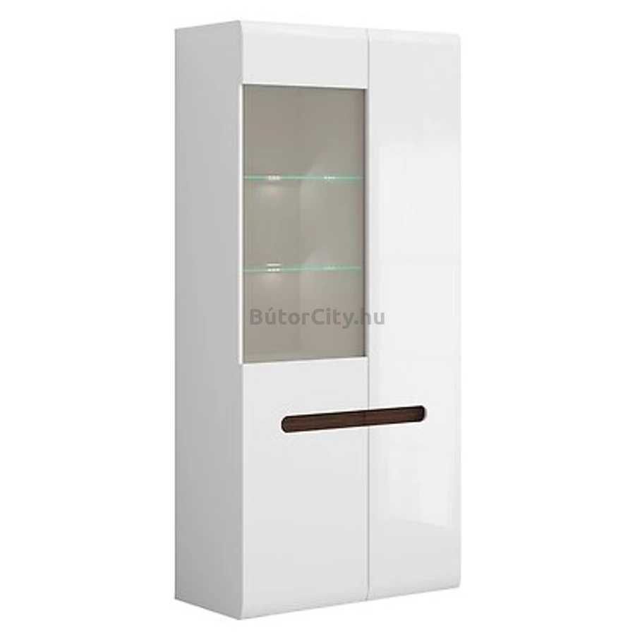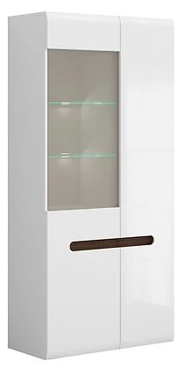 Az Azteca Trio széles vitrin az Azteca bútorcsalád egyik nagyobb méretű szekrénye. A fehér korpusz és a magasfényű fehér MDF front modern és exkluzív hatást keltenek. A bútor két polcozott részből áll, aminek az egyik oldala teleajtós, a másik fele pedig üveggel kiegészített ajtóból áll. Az áttetsző üveges polcok dekoratív LED világítással is kérhetők, amivel még jobban kiemelhetjük a szekrény ezen részét. A bútorcsalád különlegessége, hogy a csomagban 3 féle díszcsík található (mf. fehér, mf. fekete és wenge), melyek közül a bútor összeszerelésekor mi választhatjuk ki a számunkra legmegfelelőbbet.