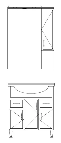 A felső elemek laptükörrel készülnek, spot LED lámpával, kapcsolóval és aljzattal ellátottak. A  kisszekrény a bal vagy a jobb oldalra is kérhető.