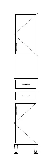 Elrendezés: 1 ajtó + 1 üres polc + 2 fiók + 1 ajtó
