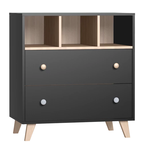 Elrendezése: 2 fiók + 3 nyitott fakk