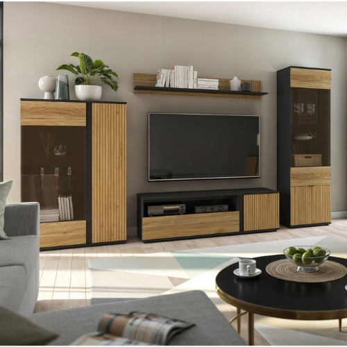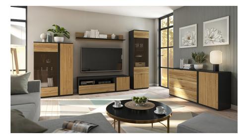 Ha olyan bútordarabokat keresel, melyek karaktert adnak, felhívják magukra a figyelmet és a legújabb lakberendezési trendekben is megállják a helyüket, akkor jó helyen jársz. A Luen elemes bútorcsalád fekete korpusza kiemelkedik a térből, a tegola tölgy és a mauvella tölgy színek remekül tompítják a fekete "komorságát". A vitrines elemekhez LED világítás is rendelhető, mellyel kellemes, meleg hangulatot kelthetünk a helyiségben. A fekete fém fogantyúk jól passzolnak a fekete korpuszhoz. Az ajtókon a 3D hatású léces megjelenés extra kinézetet biztosít az elemeknek.