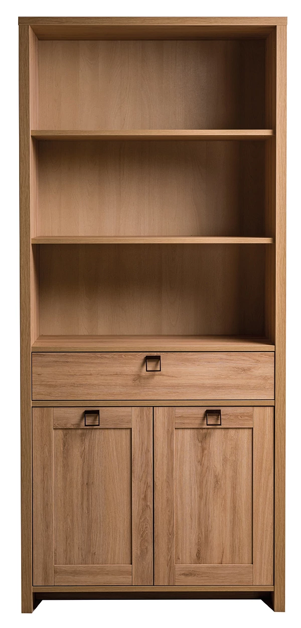 - Elrendezés: 2 ajtó, mögötte polcok, középen 1 fiók , felül 2 nyitott polc