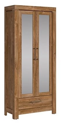 A szekrény két tükrös ajtóval és egy fiókkal rendelkezik. Az ajtók mögött polcok és akasztórúd található, így tökéletesen alkalmas kabátok, sálak, cipők és egyéb előszobai kiegészítők tárolására. A tükör praktikus megoldás a reggeli induláshoz, emellett vizuálisan tágítja a teret is.