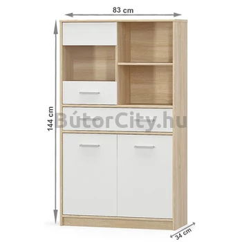 Teyo nagy vitrin, sonoma tölgy - fehér (2D1W1S/80)