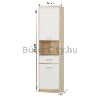 Teyo polcos szekrény, sonoma tölgy - fehér