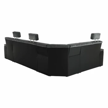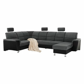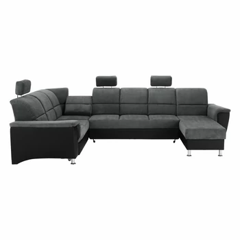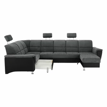 Ülőgarnitúra, műbőr fekete/szövet sötétszürke, balos, SANTIAGO U