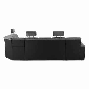 Ülőgarnitúra, műbőr fekete/szövet sötétszürke, jobbos, SANTIAGO U