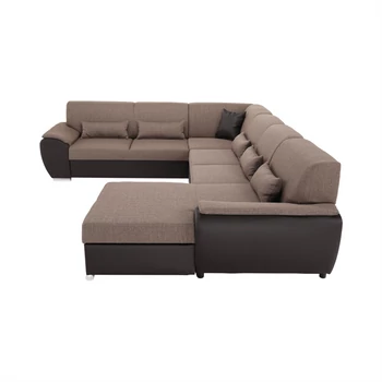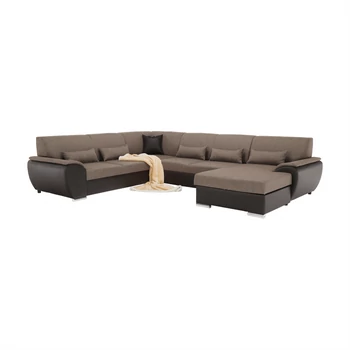 ülőgarnitúra U alakban, szövet barna/textilbőr barna, jobbos, EMILY U