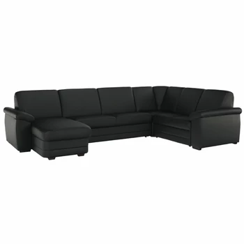 U alakú ülőgarnitúra, fekete textilbőr, balos, BITER U