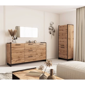 Polcos szekrény, wotan tölgy/fekete, AMONI 2D