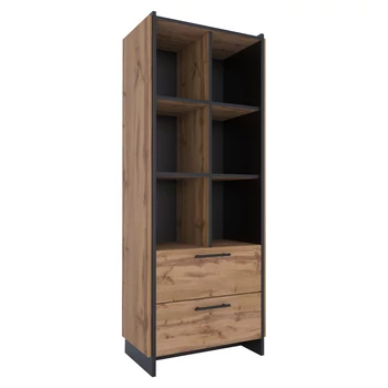 Nyitott polcos szekrény, wotan tölgy/fekete, AMONI 2S