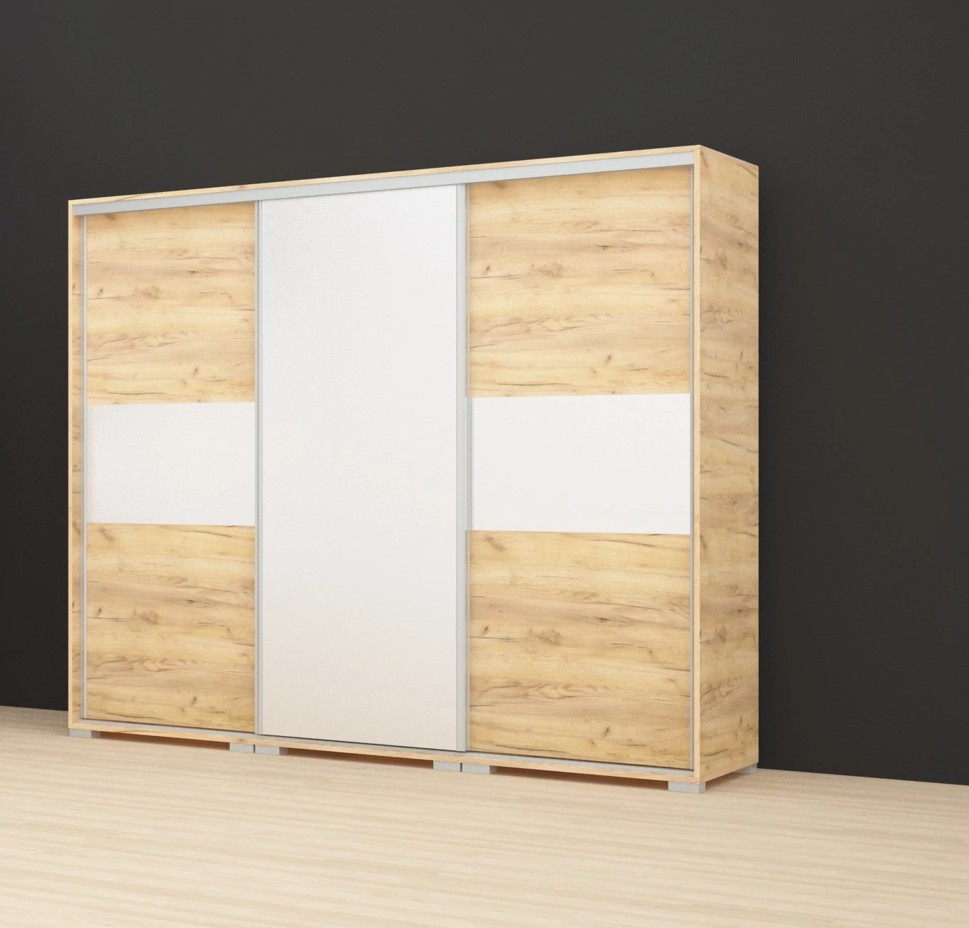 - Elrendezés: 3 tolóajtó. ebből az egyik ajtó tükör, a másik két ajtón középen tükrös betét.