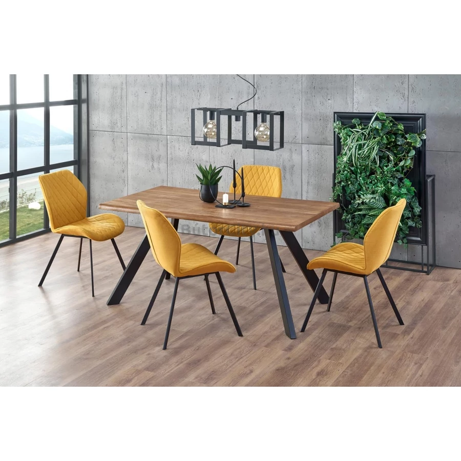 Figyelemfelkeltő steppelés, nem megszokott formavilág jellemzi ezt az étkezőszéket. Szövettel borított, így azok számára ideális választás, akik nem kedvelik a bársony hatású anyagokat. Fekete fém lábaival szinte bármilyen enteriőrben megállja a helyét. A szék 100 kg-ig terhelhető.
