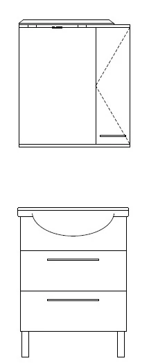 A felső elemek laptükörrel készülnek, spot LED lámpával, kapcsolóval és aljzattal ellátottak. A  kisszekrény a bal vagy a jobb oldalra is kérhető.