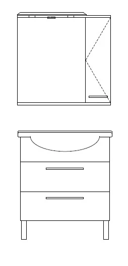 A felső elemek laptükörrel készülnek, spot LED lámpával, kapcsolóval és aljzattal ellátottak. A  kisszekrény a bal vagy a jobb oldalra is kérhető.